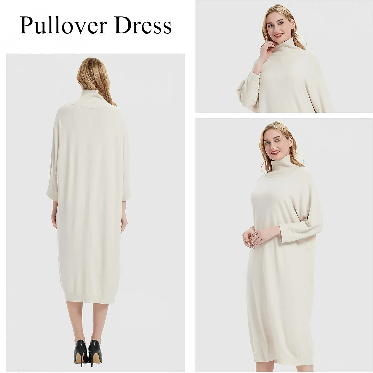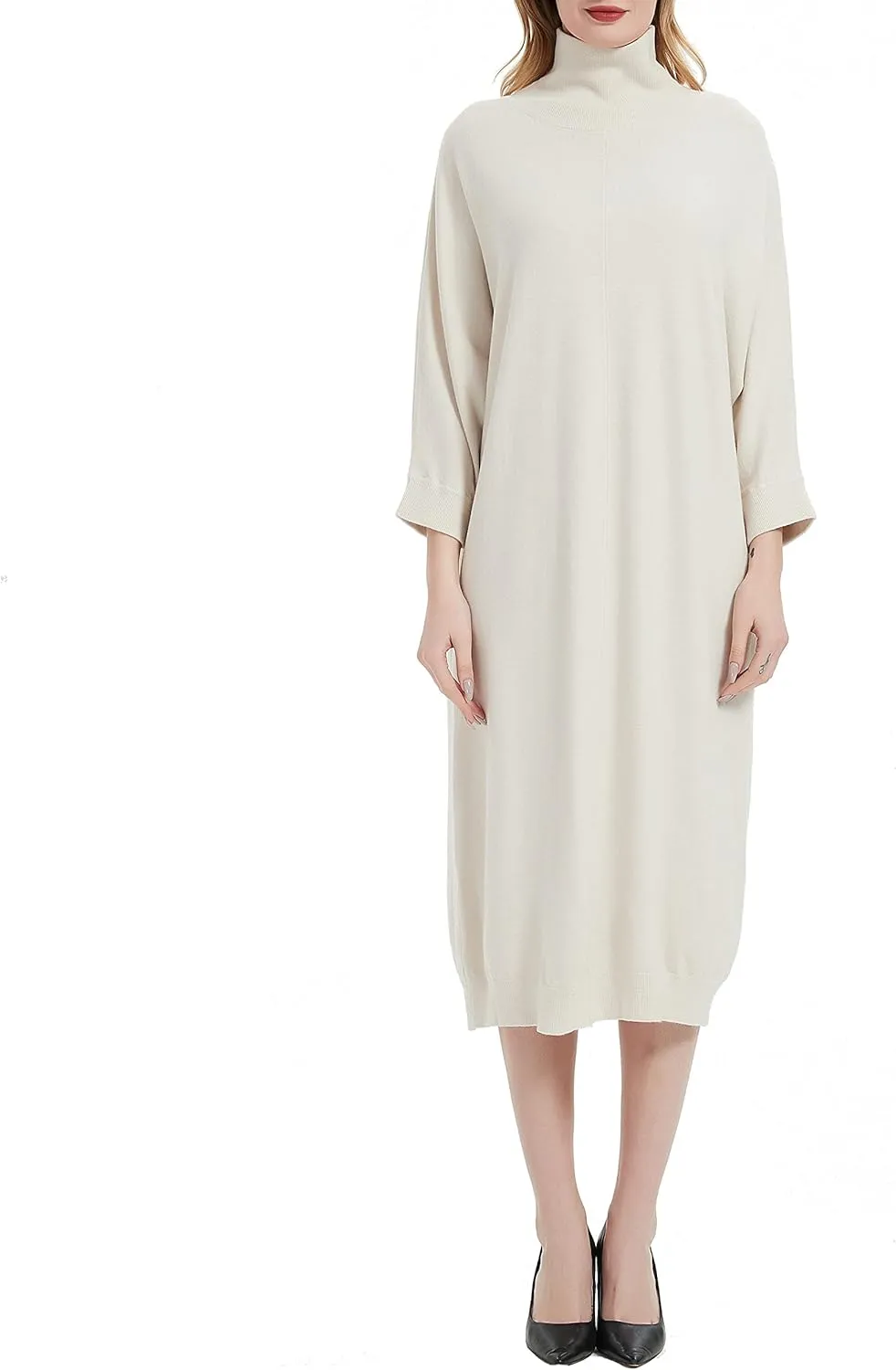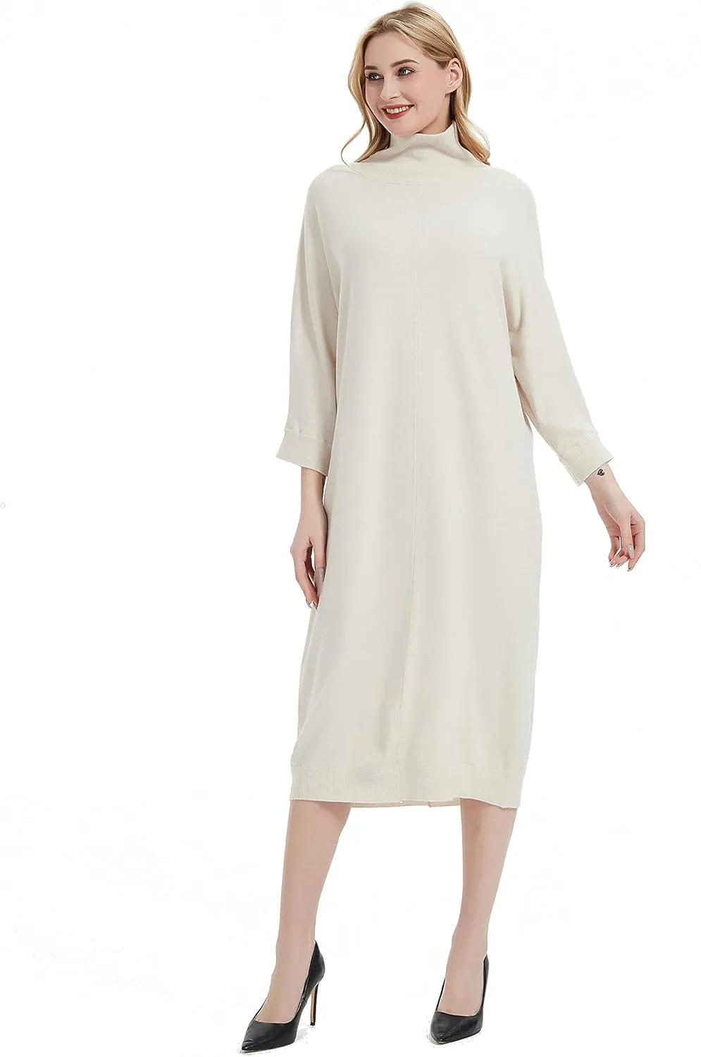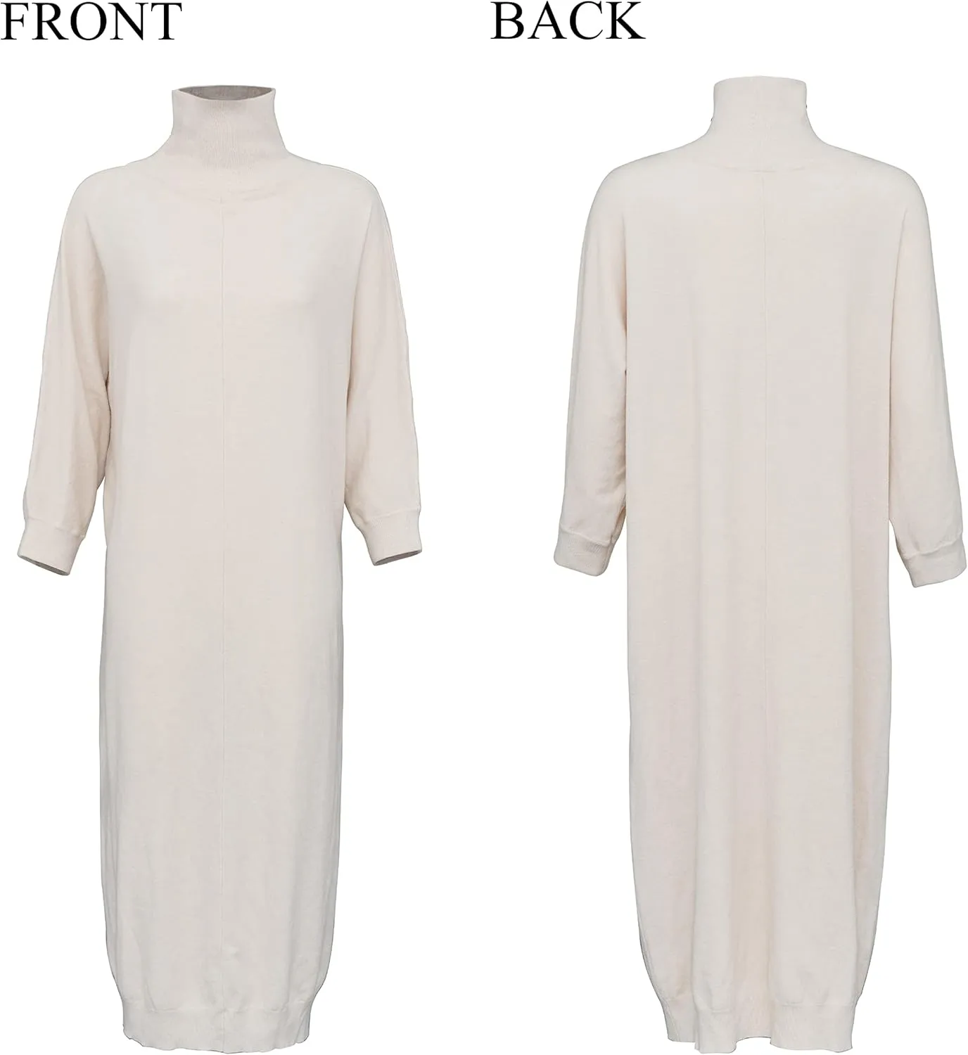- Feature: The turtleneck design has a stretching neck effect, nine-quarter sleeve design highlights the ladylike style, over knee length dress elegant casual. Basic model is versatile, moderate thickness
